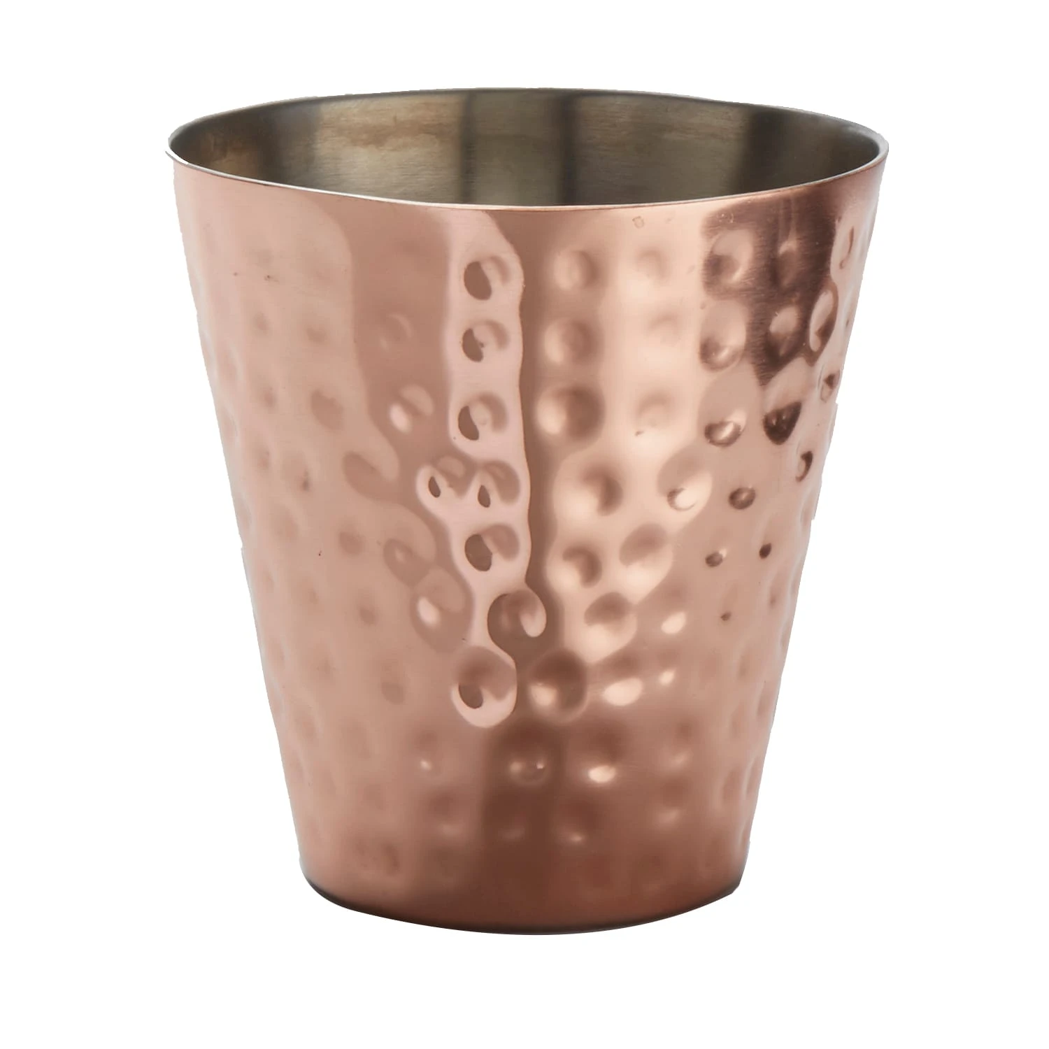 This 12 ounce tumbler from American Metalcraft features a copper finish and the hammered design will be sure to make a splash at the bar! This durable tumbler also features double-wall stainless steel construction and is perfect for use with a variety of beverages.