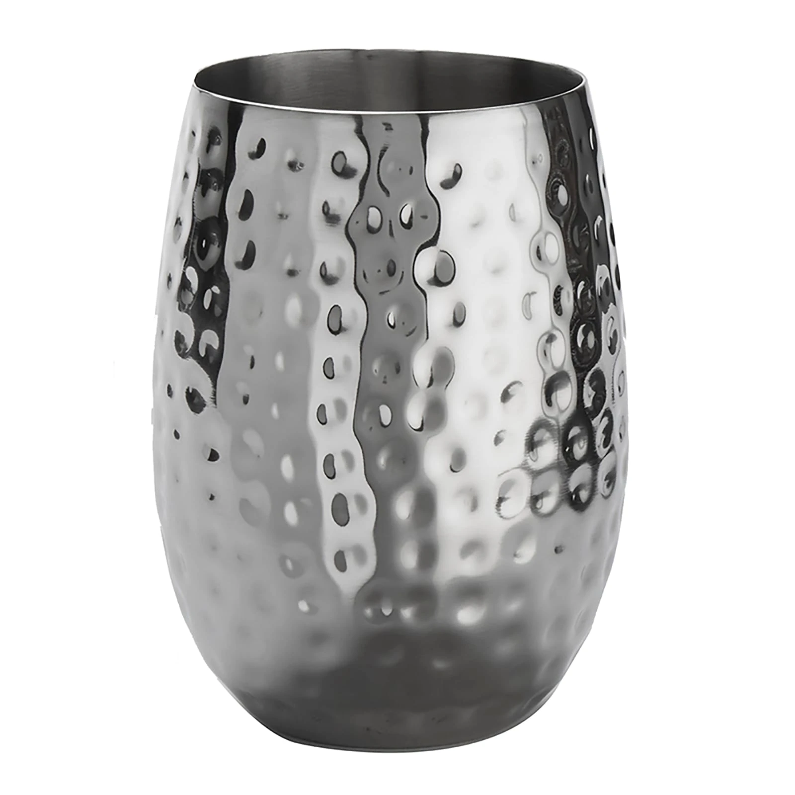 This 14 ounce mule cup from American Metalcraft features a mirror finish and the hammered design will be sure to make a splash at the bar! This durable cup also features double-wall stainless steel construction and is perfect for use with a variety of beverages.