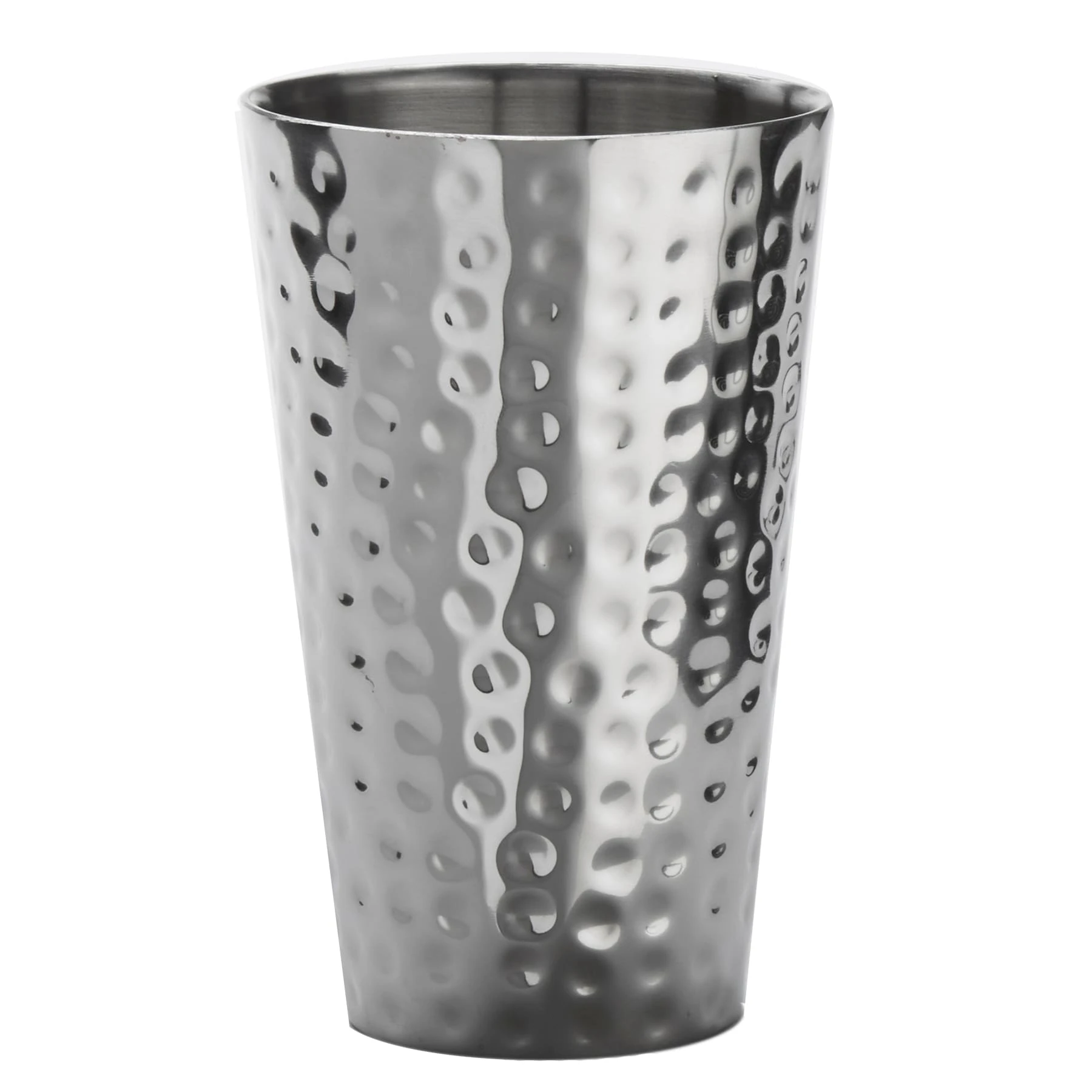 Serve a variety of beverages in this 16 ounce tumbler from American Metalcraft. It features a mirror finish and the hammered design will be sure to make a splash at the bar! This durable tumbler also features double-wall stainless steel construction.