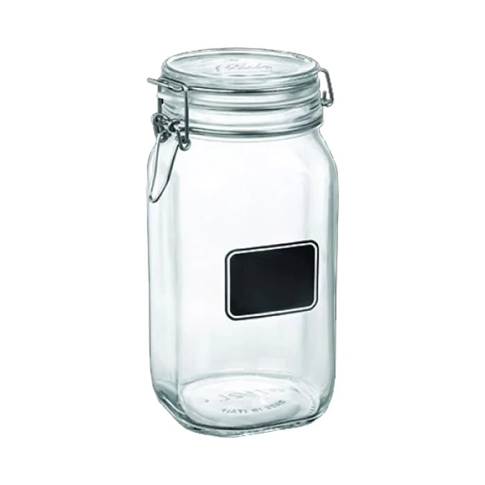 This Bormioli Rocco Fido Jar is great for storing coffee, tea, dry ingredients, and more. It has a generous 54.75 Oz. capacity and is a 9.5″ size. This jar is made from clear glass and includes a chalkboard label for easy content identification. It is finished with a clamp lid.