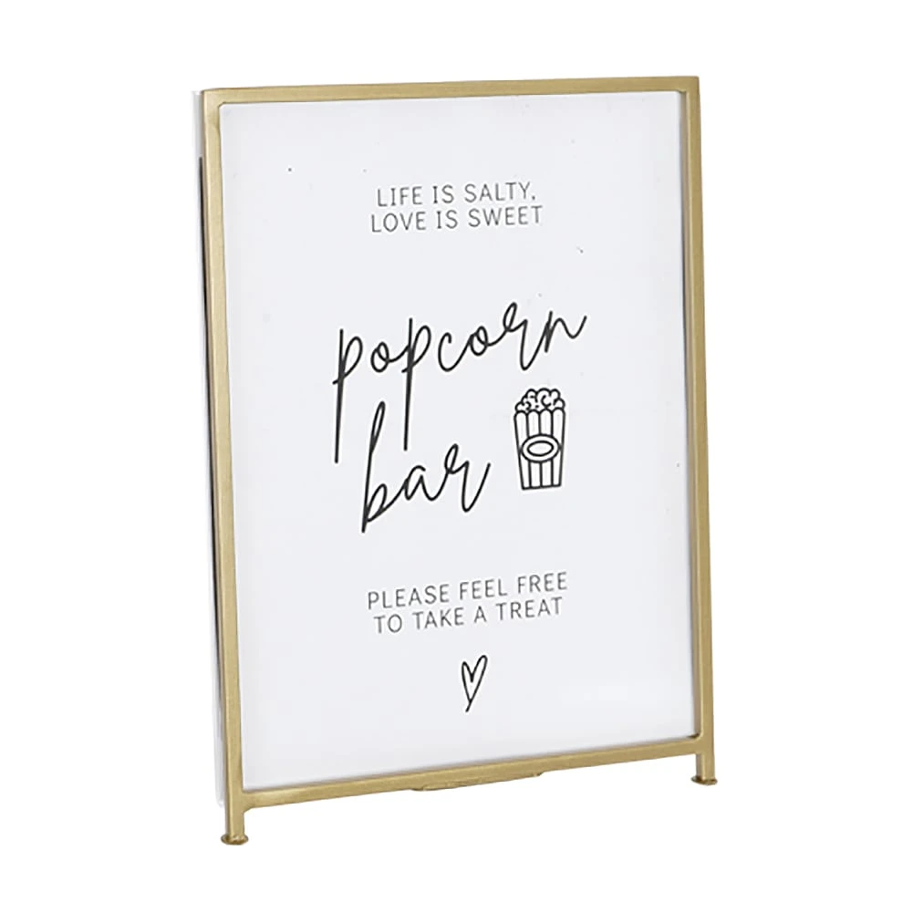 This 8.5″ x 11″ sign holder from Cal-Mil features a gold finish and is perfect for displaying specials or identifying food and beverage items.