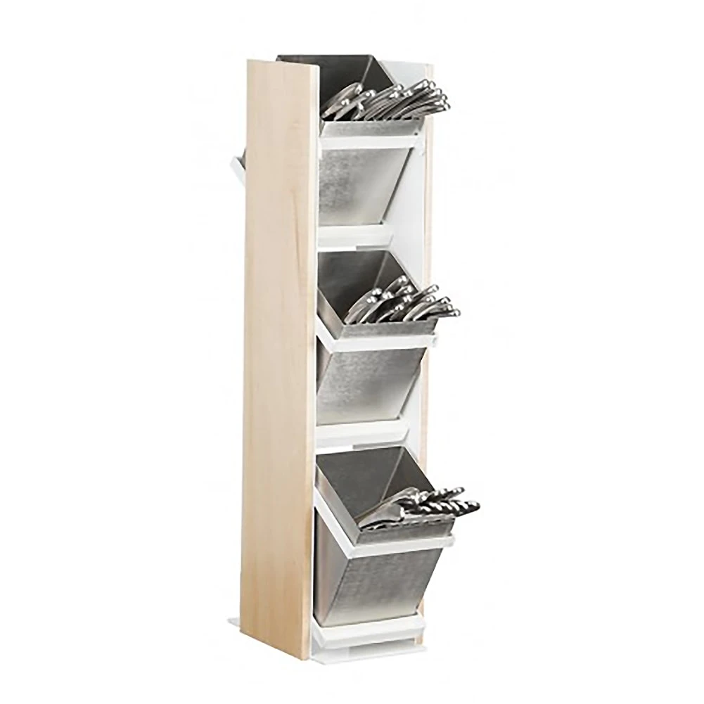 This 3-tier Blonde Vertical Flatware Holder from Cal-Mil is a fully complete unit that includes stainless steel square jars which are removable to promote easy cleaning.