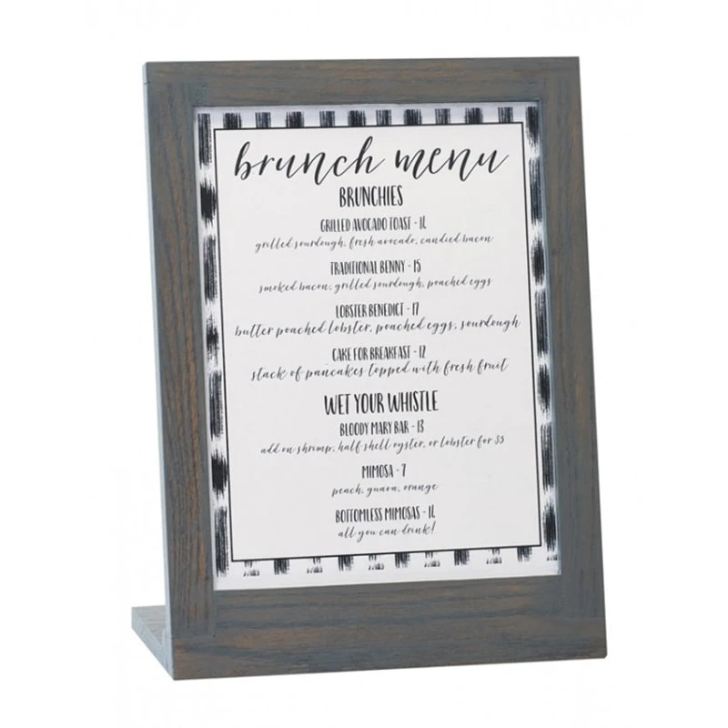 Display your drink specials, menus and happy hour specials with this Ashwood Cardholder from Cal‐Mil. It is made from gray‐washed oak and holds a 4″ x 6″ card size. Great for restaurants or banquet facilities.
