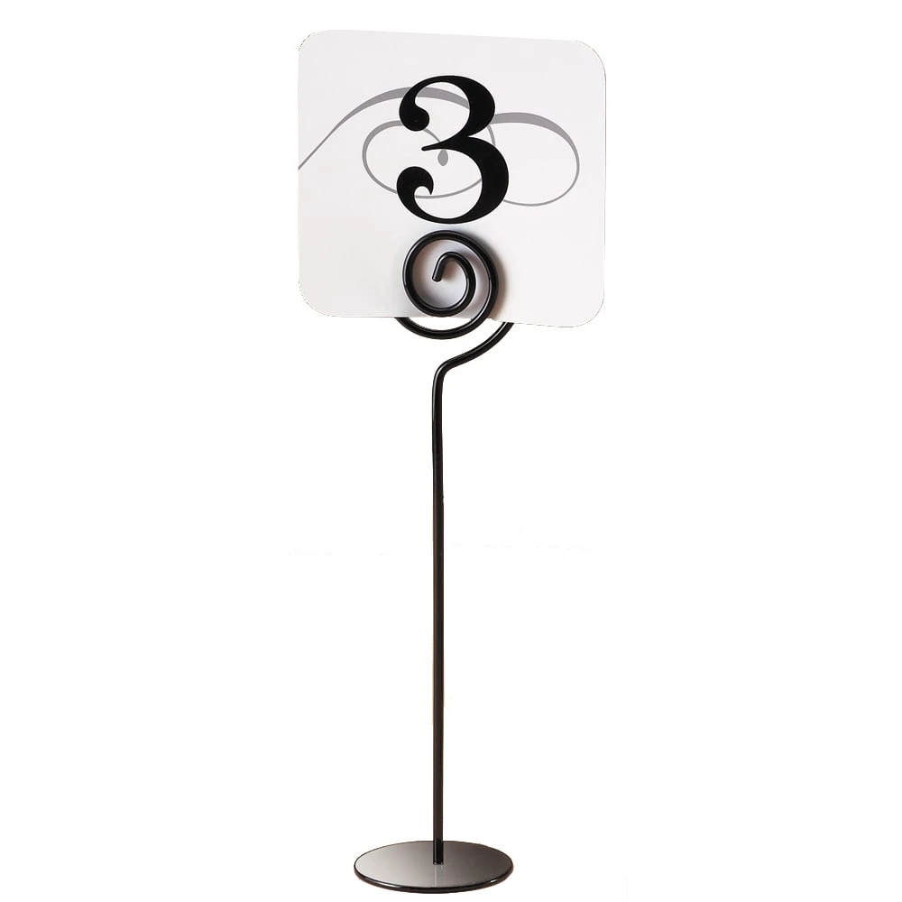 This number card stand from Cal‐Mil features a beautiful, sturdy design and is 9″ high. It is constructed of iron and is perfect for use in restaurants, diners or banquet facilities.