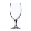 This 18 ounce schooner glass features a traditional‐style shape, with a thick foot, ball stem and round bowl.