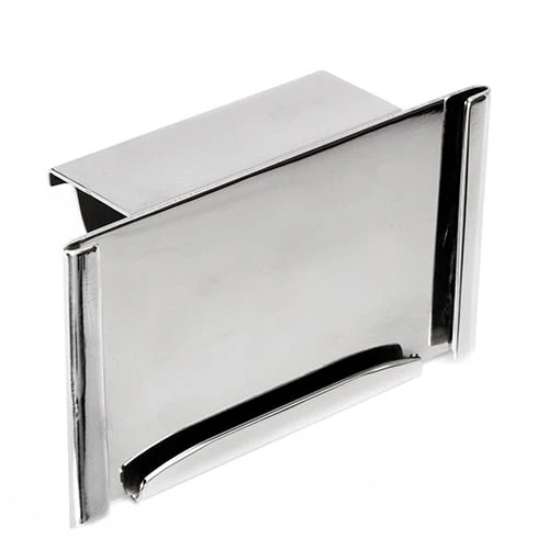 This D.W. Haber stainless steel hanging card holder is designed for use with Fusion wood risers.