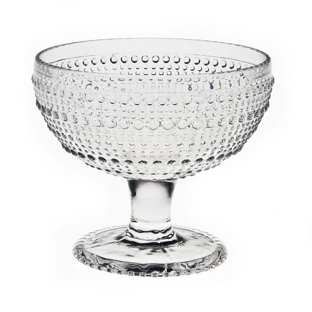 This elegant dessert dish from Forum Glass will be sure to catch the eye of your guests. It is part of the Pearls Collection and features a beautiful pearl-like pattern around the entire glass.