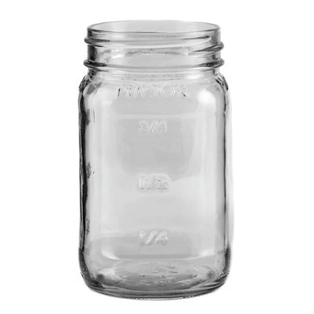 This 16 ounce mason jar glass from Hospitality Glass is great for drinks, desserts, or a display for candy.