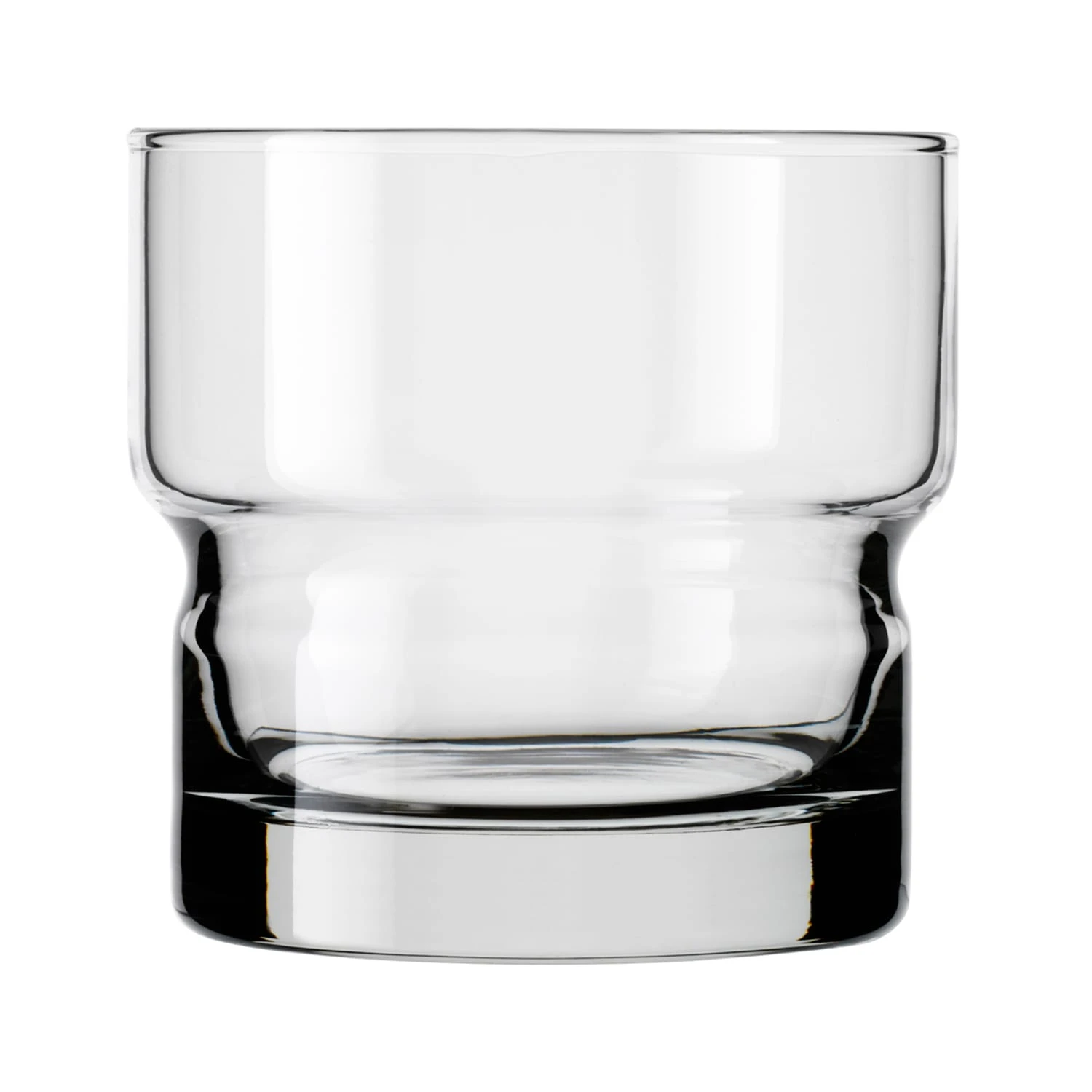 This double old fashioned glass from Libbey® is part of the Newton Collection and combines contemporary style and reliable function to enhance beverage presentation, while providing excellent durability. The recessed design allows for stackability and is perfect for bars or restaurants.