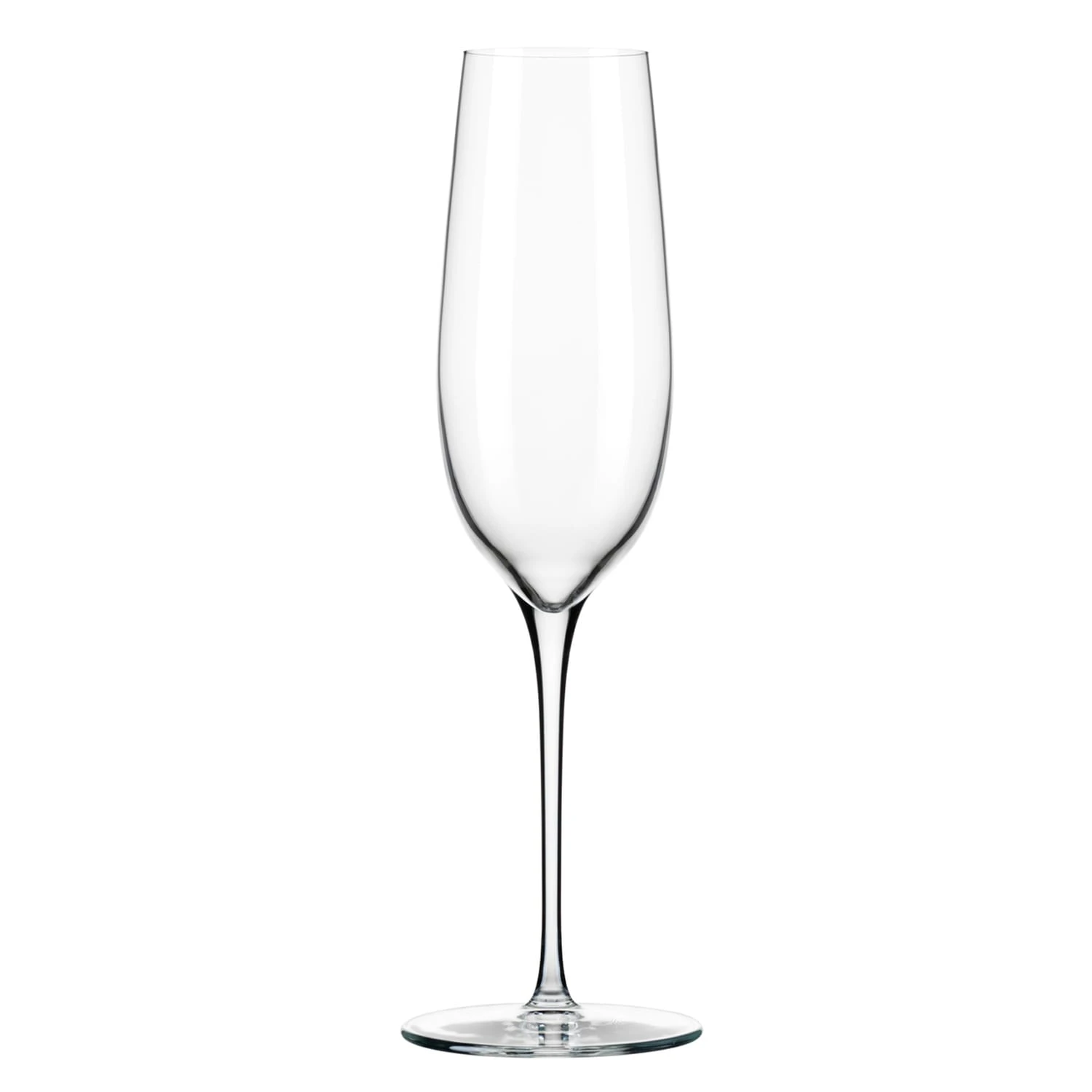 This flute glass from Libbey® has a capacity of 8 ounces and is perfect for use in restaurants, bars or banquet facilities. It is part of the Renaissance Collection and features a simple, yet elegant design that will blend with any table setting.