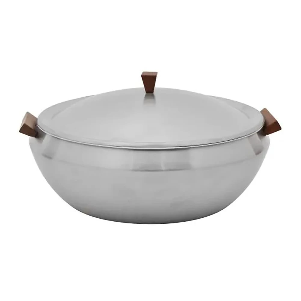 This Wynwood by Skyraâ„¢ 5 quart round induction buffet server includes an insert and features brushed stainless steel construction & hydro dip woodgrain coated components.