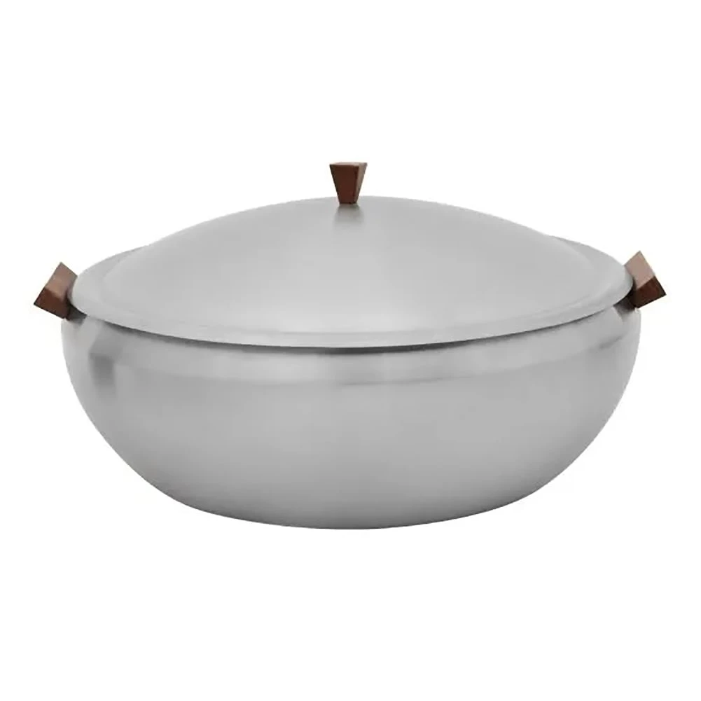 This Wynwood by Skyraâ„¢ 9 quart round induction buffet server includes an insert and features brushed stainless steel construction & hydro dip woodgrain coated components.